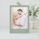 Ces mariages minimalistes et élégants sauvegardent les cartes de date disposent de texte blanc moderne sur un arrière - plan vert sage, avec votre photo personnelle. Un look chic, simple et élégant. Vous pouvez ajouter votre code QR scannable à l'arrière afin que les clients puissent facilement visiter votre site mariage.