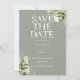 Cette élégante invitation verte saute la date avec la typographie florale verte peut être personnalisée avec vos informations en lettres chic et votre photo au verso. Conçu par Thisisnotme©