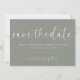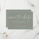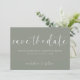 Annoncez votre journée spéciale avec une élégance sobre à l'aide de ce mariage vert sauve la carte de date. Doté d'une typographie moderne et d'une disposition douce et minimaliste, ce design conviendra parfaitement aux couples qui souhaitent séjourner dans un mariage d'inspiration romantique, élégante ou nature. Customisez les noms, la date et le libellé correspondant à votre style mariage. Idéal pour les mariages du printemps, de l'été ou du jardin, cette sauvegarde la date pair magnifiquement avec les invitations vert sauge et la papeterie. Simple, élégant et intemporel, comme votre histoire d'amour.