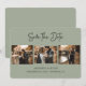 Elégante photo de mariage vert sage personnalisée enregistrer les cartes de date avec un titre de script moderne. Personnalisez facilement ce vert sauge enregistrez la date avec vos images et les détails du mariage, y compris un site Web mariage.