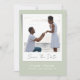 Célébrez votre histoire d'amour avec cette carte de date moderne, conçue pour les couples qui apprécient les lignes épurées et l'élégance sobre. L'avant présente votre photo préférée avec une bordure blanche et immaculée, magnifiquement encadrée par un arrière - plan vert sage et doux pour une touche romantique et contemporaine. Personnalisez-le avec vos noms, votre date de mariage et votre emplacement pour un faire-part significatif et mémorable. Le dos offre du texte entièrement personnalisable pour partager des détails supplémentaires avec vos invités. Un mélange parfait de design moderne, de tons terre et de simplicité sincère.