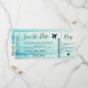 A modern and cool Save the date script beach watercolor plane boarding pass in black, perfect for destination weddings.
