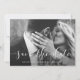 Cette élégante carte d'enregistrement de date comporte votre photo personnelle avec un romantique script blanc superposé, et un look moderne en marbre sur le dos.