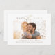 Cette invitation moderne de save the date présente un beau style de calligraphie et un design moderne et minimal en faux or.