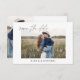 Cartes de Sauvegarde de Date de Mariage qui ont une photo sur le devant et le dos. Les cartes de Sauvegarde de Date contiennent une typographie de script cursif manuscrit moderne qui est élégante, simple et moderne à utiliser après votre célébration de mariage minimaliste simple.