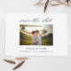 Style minimaliste élégant avec script de calligraphie. Il y a un espace réservé pour la photo spéciale du couple, la face arrière a un motif floral noir et blanc.