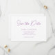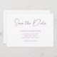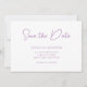 Mariage minimaliste enregistrer le texte de la date dans une élégante calligraphie manuscrite de style moderne. Les noms du couple et les autres informations sur l'événement mariage disposent d'une police moderne utilisée avec des options tout-casquette et minuscules. Modifiez la couleur de police de l'arrière - plan ou de la lavande en blanc uni pour qu'elle corresponde à votre palette de couleurs mariage.