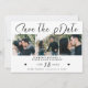 Design minimaliste design design noir et blanc script de calligraphie moderne mariage enregistrer la carte de date avec 3 photo collage. ++++++++++++++++ Convient pour toute saison et thème. ++++++++++++ Facile à personnaliser avec vos photos et détails des deux côtés.