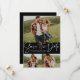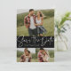 Avec trois photos et un script moderne écrit "save the date" en blanc sur un arrière - plan noir, cette carte est le moyen parfait pour annoncer votre fiançailles et mariage à venir à vos amis et votre famille. Le texte blanc est audacieux et moderne mais toujours sophistiqué. Le texte personnalisable sur le devant a de la place pour les noms, la date, l'emplacement et d'autres informations comme un site Web mariage. Le dos est un noir assorti avec un blanc étoilé. Vous pouvez modifier la couleur en cliquant sur "customiser plus loin".