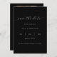 Chic Romantic Script Wedding Enregistrez le faire-part de date avec votre photo et le site mariage QR Code au verso sur un arrière - plan noir.