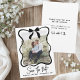 This black and white wedding save the date features a single centered photo framed by a simple swirling ribbon-style border. A small hand-drawn bow sits at the top, adding a soft touch above the image. Below the framed photo, “Save The Date” appears in handwritten script, with space underneath to center the couple’s names and wedding date. The background is white on both sides, and all artwork and fonts are black for a clean, minimal look. The back includes a short request to save the date, the location, and “formal invitation to follow,” written in a mix of handwritten and script fonts. Available as a printed card or a digital file you can send or print anywhere.