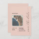 Simplement structuré enregistrer la date avec toutes les informations importantes : le couple, la ville, et bien sûr la DATE! Doté d'une photo personnalisée du couple, sous-titrée personnalisée avec un cadre d'accent de Sage Green. Reverse à un rougissement solide "Dogwood Pink". Calligraphy lettering crée un élégant titre "save the date". Toutes les couleurs sont personnalisables grâce à l'outil de conception.
