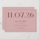 Un simple et moderne enregistrer la carte de date. Personnalisez ce design de couleur rose rose chic pour avoir votre date, vos noms et vos détails mariages.