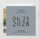 Un mariage simple, élégant et de bon goût enregistrer la carte de date en bleu poussiéreux avec du texte noir et comporte une photo du couple heureux sur le côté arrière de la carte. Le modèle de texte est facile à remplir avec vos informations et la date est affichée en gros texte gras pour aider vos futurs invités mariages à planifier pour votre grand jour. La forme carré unique de cette carte ajoute un style moderne et feuille une belle impression pour vos destinataires.