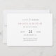 Cette mariage simple et chic, à l'exception de la modèle de carte du soir, présente un design élégant, minimaliste et moderne. La forme par défaut est les coins arrondis, mais les coins tranchants standard fonctionnent aussi merveilleusement avec cette conception, alors essayez les deux regards en mode édition et voyez qui frappe votre fantaisie! L'avant présente vos prénoms et un message "save the night" dans une élégante nuance d'or rose et véhiculé par un mélange frappant de deux polices distinctes, avec "the" dans un script léger et fluide entre le reste du message, qui est en haut coque avec un aspect formel audacieux et croustillant. Cet élément de conception est inclus des deux côtés de la carte et ne peut pas être modifié, bien que vous pouvez choisir de le supprimer au dos pour un look encore plus simple. Et au verso, vous pouvez bien sûr, en plus de remplacer nos exemples d'informations par les vôtres, supprimer des champs de texte dont vous n'avez pas besoin, ou modifier le libellé, ainsi que modifier la police, la taille et la couleur. Au dos, nous avons choisi le même or rose pour vos noms que nous avons utilisé pour le texte "Save the Evening" sur le devant. Lorsque vous modifiez le texte pour afficher vos propres noms, vous pouvez préférer modifier cette couleur en noir de l'autre texte ou d'une autre tonalité. Et lorsque vous modifiez vos propres noms, vous pouvez choisir d'inclure vos noms de famille ainsi que vos prénoms. La couleur arrière - plan par défaut sur les deux côtés de cette carte est définie comme transparente, pour laisser la couleur papier servir simplement de tonalité de base. Mais vous pouvez modifier ceci et changer l'apparence d'un ou des deux côtés à cet égard aussi bien pour convenir à votre style. La couleur par défaut pour vos noms sur le devant est le noir et le texte sur le dos est un mélange d'or rose, noir et un noir légèrement adouci. Customisez cet élégant mariage minimaliste économisez le modèle de carte du soir avec les outils d'édition intuitifs de zazzle et votre inspiration et faites-en le vôtre unique!