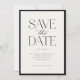 Simple Elegant Black White Script Photo Save the Date dispose d'une bordure solide, entouré d'un type moderne qui comprend un script de calligraphie.