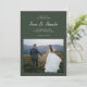 Ce mariage simple et chic de deux photos forêt verte sauver le faire-part date dispose d'un design minimaliste moderne avec typographie classique et joli écriture. Magasinez cette collection de mariage élégante pour coordonner les invitations de mariage, et d'autres options de couleurs tendance.