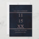 Cette carte élégante et simple pour annoncer la date de votre mariage est un modèle charmant et unique pour votre événement. Elle présente une bordure dorée rose imprimée en faux-pliage qui encapsule une grande mise en évidence de la date dans une typographie de ton doré rose assortie sur un fond peint à l'aquarelle bleu marine foncé, artistique et moderne. C'est joli, chic, minimaliste et tendance !