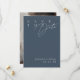 Augmentez l'anticipation de votre journée spéciale avec nos cartes Simple Royal Blue Opulence et White Modern Photo Wedding Enregistrer la date. Embossant simplicité et élégance, ces cartes combinent harmonieusement un design épuré et minimaliste avec la touche personnelle de vos moments chéris capturés dans une photo bleue et blanche royale. L'esthétique sombre de la palette sophistiquée ajoute une touche d'allure hivernale aux éléments modernes et traditionnels, créant un faire-part chic et intemporel. Chaque carte est une fusion harmonieuse de simplicité et de grandeur, offrant une déclaration minimaliste mais impactée qui résume magnifiquement l'essence de votre prochain mariage.