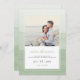 Ce beau et élégant vert sauge la date présente un arrière - plan à l'ombre aquarelle avec une bordure blanche et une photo pour la personnalisation. Le dos de l'invitation comprend le même arrière - plan d'aquarelle de sauge. Il fait partie de la Collection Aquarelle Ombre qui peut être vue en cliquant sur le lien de collection ci-dessus.