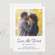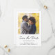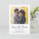 Photo moderne Mariage Enregistrer la carte Date avec un design de script simple. Avec le lettrage personnalisable, vous ajoutez vos noms et informations de mariage. Vous pouvez également ajouter votre propre photo pour ajouter une touche de personnalisation. Un élégant faire-part boho pour planifier votre journée spéciale.