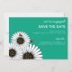 Cette annonce SAVE THE DATE présente un design moderne et frais de Gerbera Daisies blanches avec des bogues de dame. Facilement customisé avec vos informations. Beaucoup de couleurs - vert paon ::ENVELOPES INCLUS ::