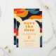 Ce mariage super, coloré, rétro, ondulé boho enregistrer la date peut être personnalisé avec vos informations dans la typographie moderne et une photo spéciale avec votre site mariage QR code au verso. Conçu par Thisisnotme©