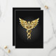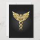 Symboles Caduceus polygonaux or sur arrière - plan noir isolé. Basse poly symbole de la médecine.