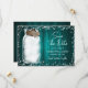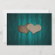 Rustic teal wedding save the date card featuring a mason jar adorned with two burlap hearts on a barn wood background. Easily personalize this romantic rustic teal wedding save the date online. Matching items available to complement this teal wedding save the date.