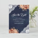 Save The Date Terracotta Floral Navy Photo QR Code Mariage