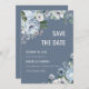 Elégant mariage d'hiver fleuri enregistrer la carte de date dispose d'élégante couleur grise et bleu glacé bouquet de fleurs glacé. Veuillez me contacter pour toute aide sur la personnalisation ou si vous avez besoin d'un autre produit avec ce design.