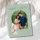 Tropical flower in pinks and greens with modern arch photo beach wedding save the dates. Customize with your photo and wedding details. For best results, crop the photo before uploading to the template. Contact me if you need help with the design or template - I'd be happy to help.