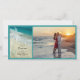 Annoncez votre cérémonie de mariage de destination décontractée mais classe à venir sur l'île et la réception avec le joli Tropical Beach Wedding Save the Date Carte photo. Ce mariage à thème personnalisé de tropiques garder la date faire-part photocard présente une photo nature pittoresque de l'océan turquoise ou bleu aqua sur une plage de sable blanc avec un palmier et un design tourbillon turquoise ornant le coin.