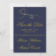 Save The Date | Two Gold Hearts Navy Blue Wedding