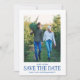Utilisez cette carte de date très moderne et simple pour informer les gens de quand et où vous avez programmé votre mariage. Il est conçu pour présenter votre photo préférée. Les amis et la famille adoreront vous voir ensemble - surtout s'ils n'ont pas rencontré votre futur conjoint ! Save the Date est écrit dans une police serif élégante. Vos noms sont au-dessus et la date et l'emplacement sont ci-dessous.