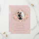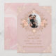 C'est un modèle de carton de mariage 'save-the-date' sophistiqué avec une délicate couronne circulaire faite de roses roses pâles et de feuillage brun doré. La palette de couleurs combine des fonds roses poussiéreux doux avec des accents métalliques brun doré. Des fioritures décoratives dans les coins et une bordure subtile complètent la composition élégante. Le design général suggère un mariage romantique et luxueux avec des éléments inspirés de l'époque victorienne.