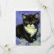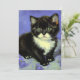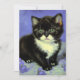 Carte avec un chaton tuxedo dans le style de Vincent van Gogh! Cette jolie petite pose avec des fleurs violettes. Un superbe cadeau pour les collectionneurs d'art amoureux des chats et néerlandais !