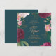 Prévoyez-vous un mariage romantique, rustique, champêtre ou de grange? Le fond vert émeraude met en valeur vos détails en or et fleurs en rouge et rose. La verdure florale aquarelle et les fleurs blanches donnent à vos invitations de mariage une brillance spéciale