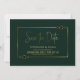 Faites connaître à vos amis et à vos proches votre date de mariage pour que chacun puisse assister à votre journée spéciale et partager la joie de votre journée avec cette carte verte avec mariage encadré d'or Save-the-Date.