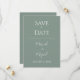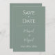Magnifique sauge verte "Save the Date" qui est parfait comme prélude à votre invitation formelle pour tous vos invités. Fait avec de belles polices en blanc simple et élégant. Parfait pour votre occasion spéciale.