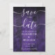 Cet élégant violet rustique grange bois boho mariage enregistrer-le-jour carte peut être personnalisée avec vos informations dans la typographie chic. Conçu par Thisisnotme©