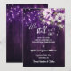An elegant Wedding Anniversary Save the Date Card with elegant calligraphy completed by wonderful purple wood, garden string lights and white and purple watercolor garden floral. You can personalize this card with your pre-Wedding Anniversary details.