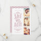 Annoncez votre date en style avec cette 3-photo enregistrer la carte de date avec une typographie en gras. Le verso comprend un motif rayé et une photo et un texte supplémentaires.
