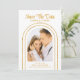 Save the Date White Gold Stilvolle Script Art Deco Wedding Cards bietet Ihr Lieblings-Foto in einem goldenen Bogen auf weißem Hintergrund. Personalisieren Sie Ihren Text, indem Sie den Text in den dafür vorgesehenen Textfeldern bearbeiten. Entwickelt für Sie von ©Evco Studio www.zazzle.com/store/evcostudio
