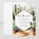 Entrez dans la romance du désert avec le mariage romantique de Cactus Wild West, enregistrez la carte de date. Parfait pour les couples qui rêvent d'une fête d'inspiration désertique, cette carte présente un design romantique de cactus avec une touche de Far West. Le modèle modifiable facilite la personnalisation avec les détails de votre mariage, et le téléchargement instantané vous permet de commencer à customiser immédiatement. Cette carte numérique donne le ton parfait à un mariage plein d'aventure et d'amour.