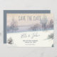 Save the Date Winter Wedding Announcement Card erstellt mit einer Watercolor Winter Szene in Blautönen. Der Text enthält: Save the Date, die Namen von Braut und Bräutigam, das Hochzeitdatum und die förmliche Einladung zu folgen. Die Rückseite ist ein passender blauer Hintergrund. Um Ihre persönlichen Daten zu personalisieren, fügen Sie einfach Ihre Daten in unsere einfache Vorlage ein, die den Beispieltext ersetzt. Diese Verlobung Announcement Card steht Ihnen als Download zur Verfügung.