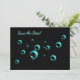 Ein klassisches, minimalistisches Design mit einer Gruppe hübscher blauer Bläschen kontrastiert mit einem schwarzen Hintergrund mit dem Satz: Save the Date im Einklang mit Aquablau. Die Rückseite ist hellblau mit Textvorlage, die Sie in Ihre eigenen Details ändern oder Sie können den Text löschen und die Nachricht auf der Rückseite schreiben Hand schreiben. Mache von unserem Mengenrabatt Gebrauch.