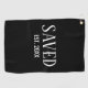 Minimal Saved Established Christian Easter Golf Towel with CUSTOMIZABLE YEAR and classic white caps serif font. Perfect gift for Christians of all ages, and especially during Easter or for a newly saved golfer. Contact me if you're a church or faith-based group and would like extra branding with your logo. Ideal personalized unisex Christian Saved Golf Towel for all ages. Matching gifts available. Also in white.