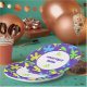 Farbenfrohe Blumenstege auf lila Hintergrund mit benutzerdefiniertem/personalisiertem Text