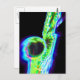 Ein großartiges psychedelisches Bild eines Saxs, mit leuchtenden psychedelischen Farben, Grüntönen und Blues, und Zoom-Effekt, der ein leuchtendes elektrisches Gefühl verleiht.